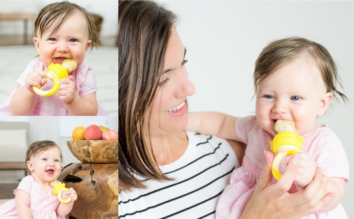 • Insert the chosen silicone sac through the ring of the Baby Fruit & Food Feeder